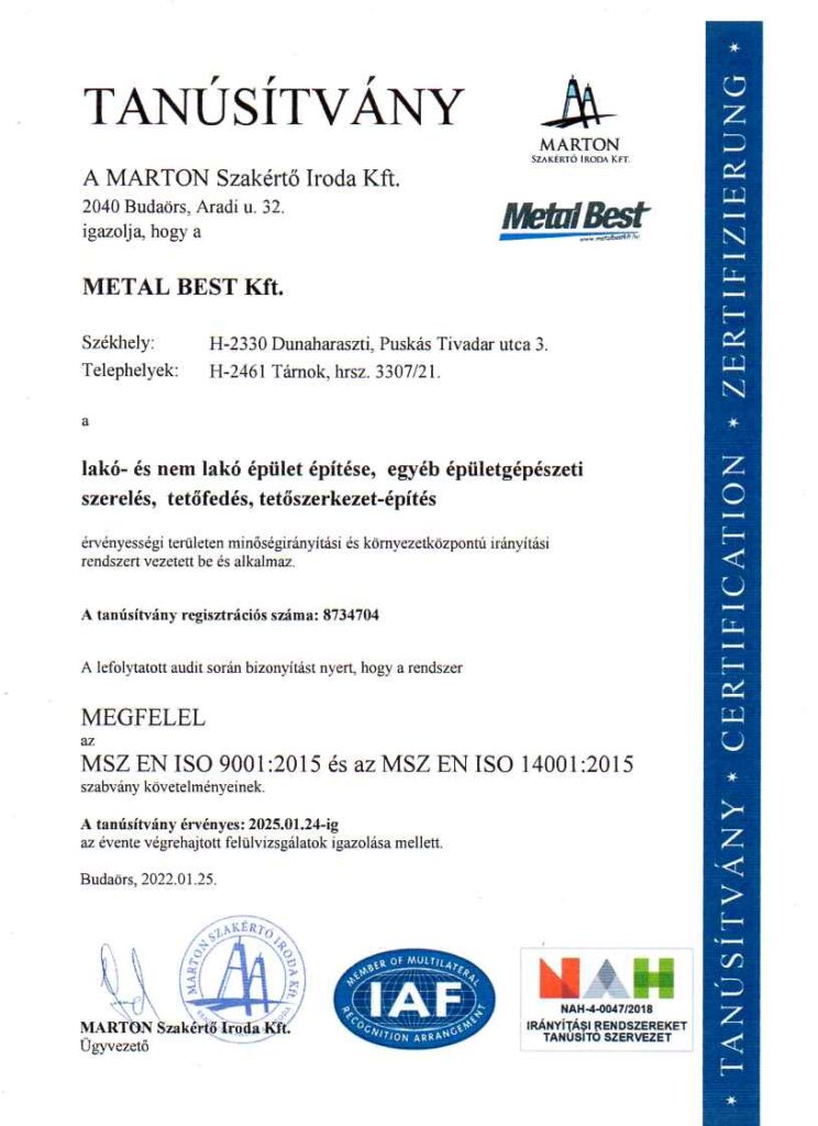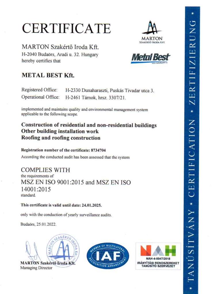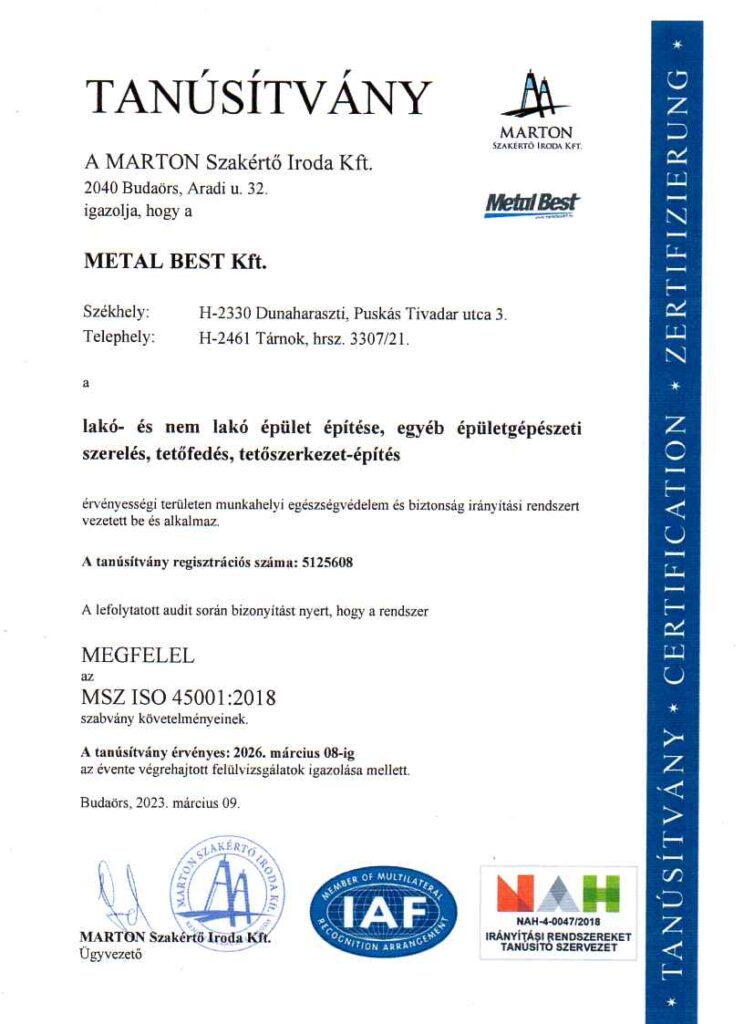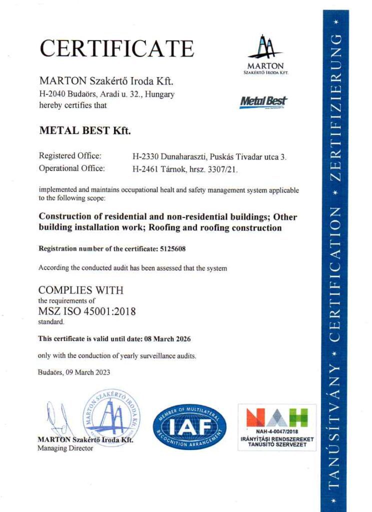 Metal Best Kft has received Dun & Bradstreet’s AAA (triple A) Certificate, which indicates that the financial risk of establishing business relations with our company is extremely low.